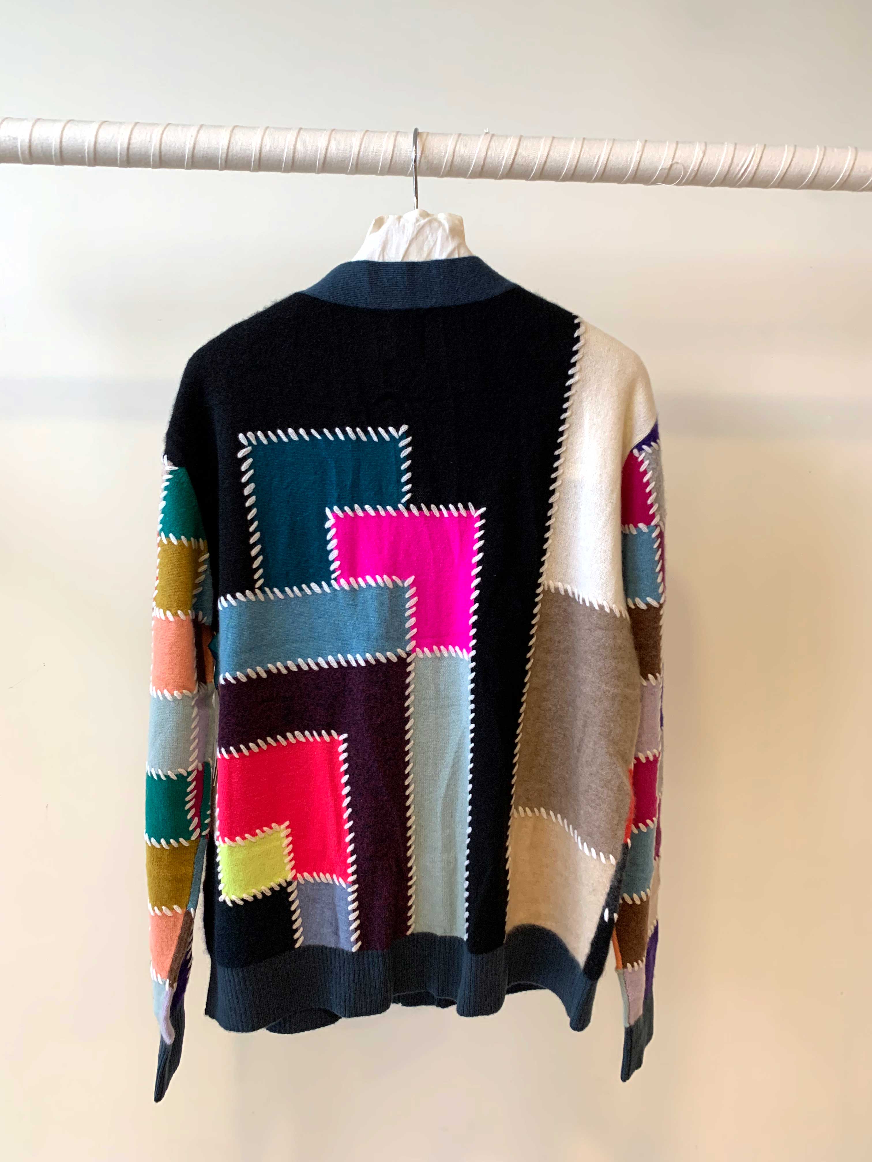 MEN'S COLOR BLOCKIG INTARSIA CARDIGAN WITH HAND EMB