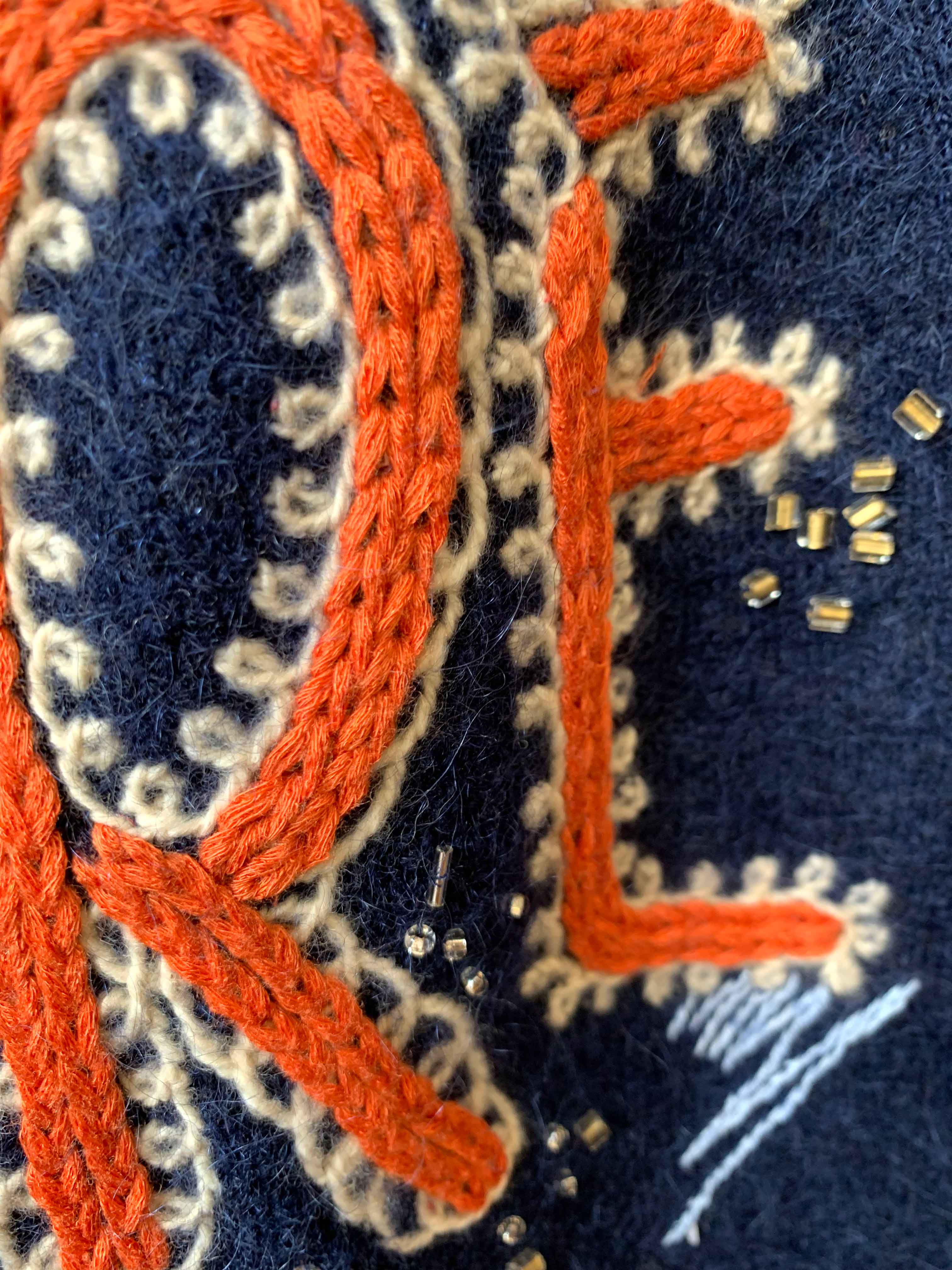 LADIES CARDIGAN WITH BOLD FONT EMBROIDERY & BEADING