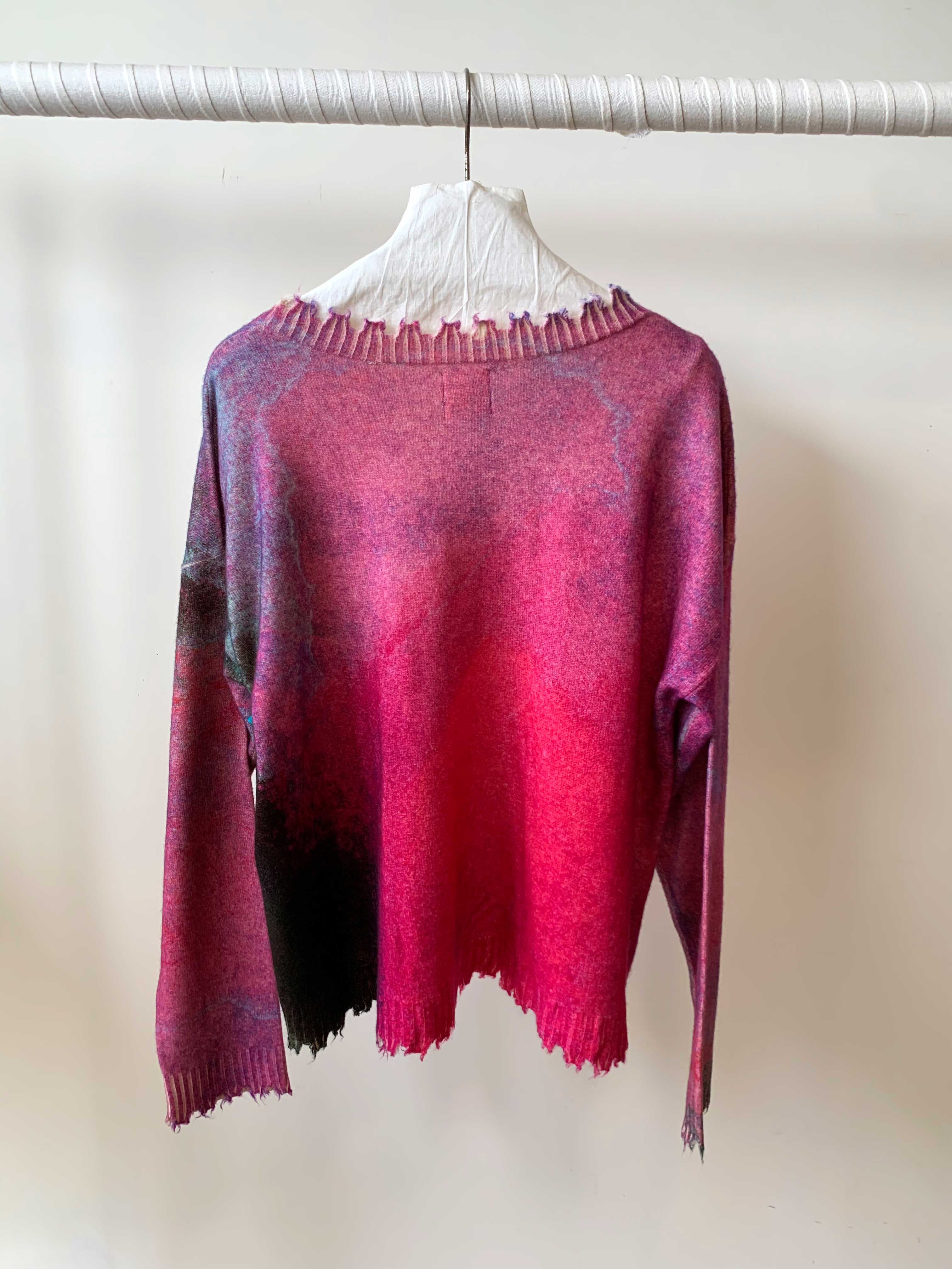 女士圆领套头衫 W/H 印花&仿旧下摆&袖口
